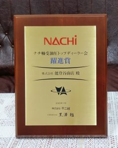 本年度は、油圧機器の販売全国上位に贈られる『躍進賞』を受賞いたしました。皆様のおかげをもちまして、2023年以来2年ぶり6回目の表彰を受けることが出来ました。本当にありがとうございました。今後とも不二越製品のご愛顧をよろしくお願い申し上げます。